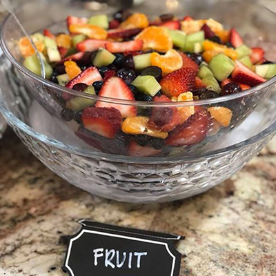 Let Sara work with you to customize the perfect menu for your special event for up to 200 people. Whether it’s appetizers, charcuterie boards, fruit salads, brunch, lunch or dinner entrees, desserts, signature drinks and much more, Sara’s got you covered!
